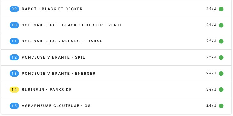 4. Réservez facilement : Vous pouvez réserver vos outils directement sur place à notre local, sur les horaires de permanences. Réglez l’emprunt en fonction du nombre de jour de réservation de l’outil.